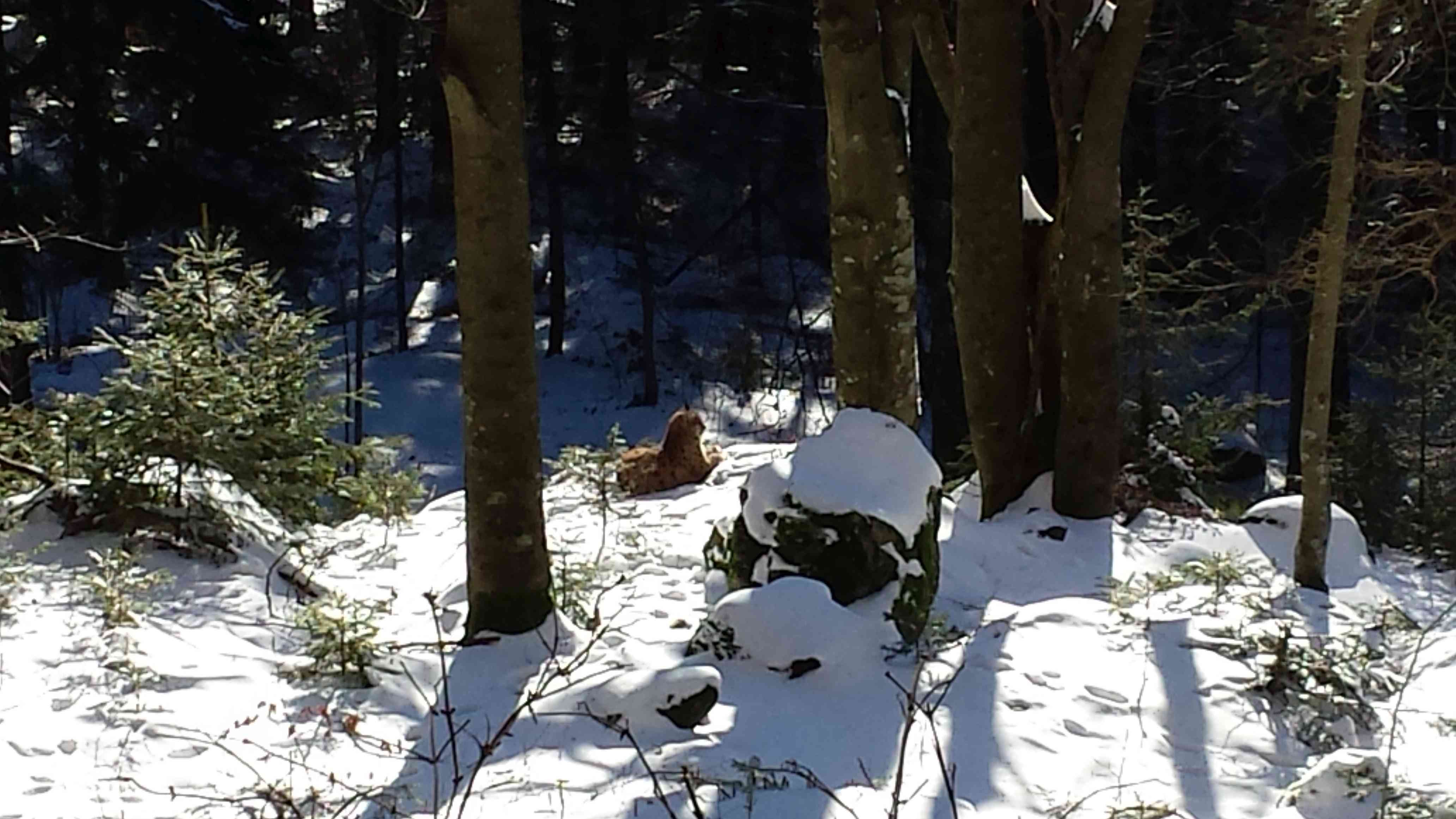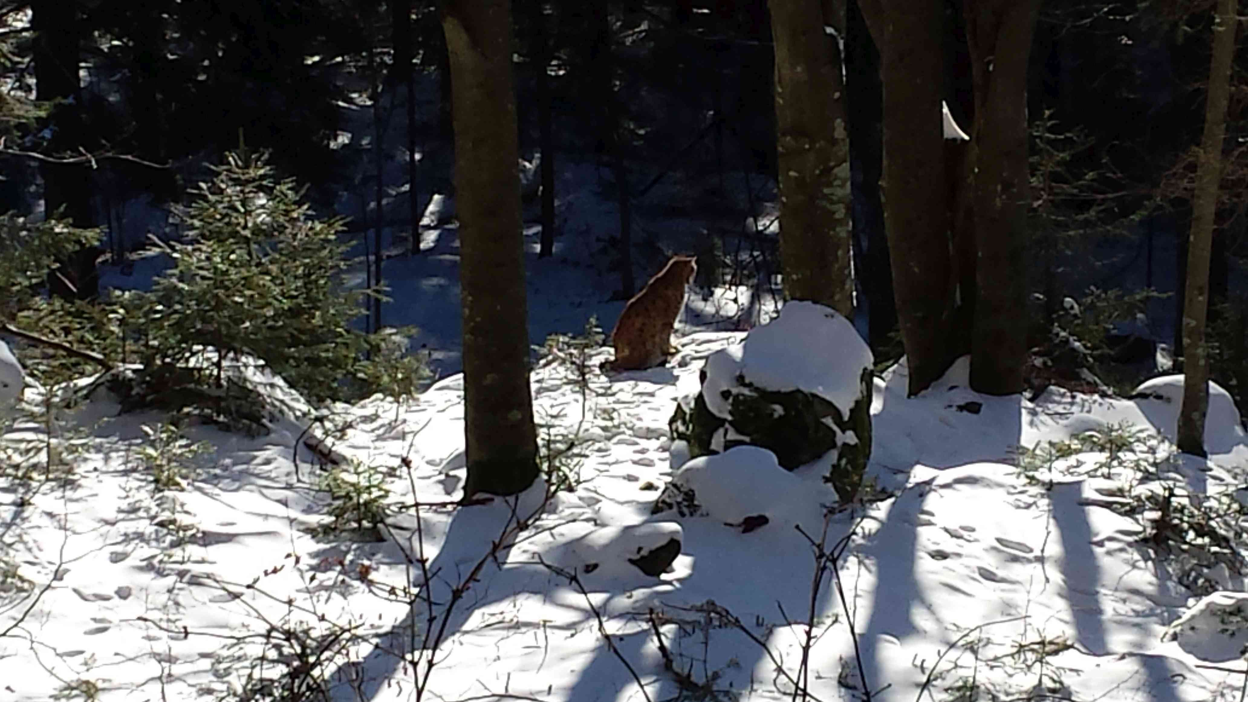 So wie das Rotwild, bevorzugt auch der Luchs den inneren und ruhigeren Bereich des Nationalparks in ein paar Kilometern Entfernung. Die letzte Wolfssichtung war vor ca. 8 Jahren, aber sicher ist, der nächste Wolf kommt bestimmt.