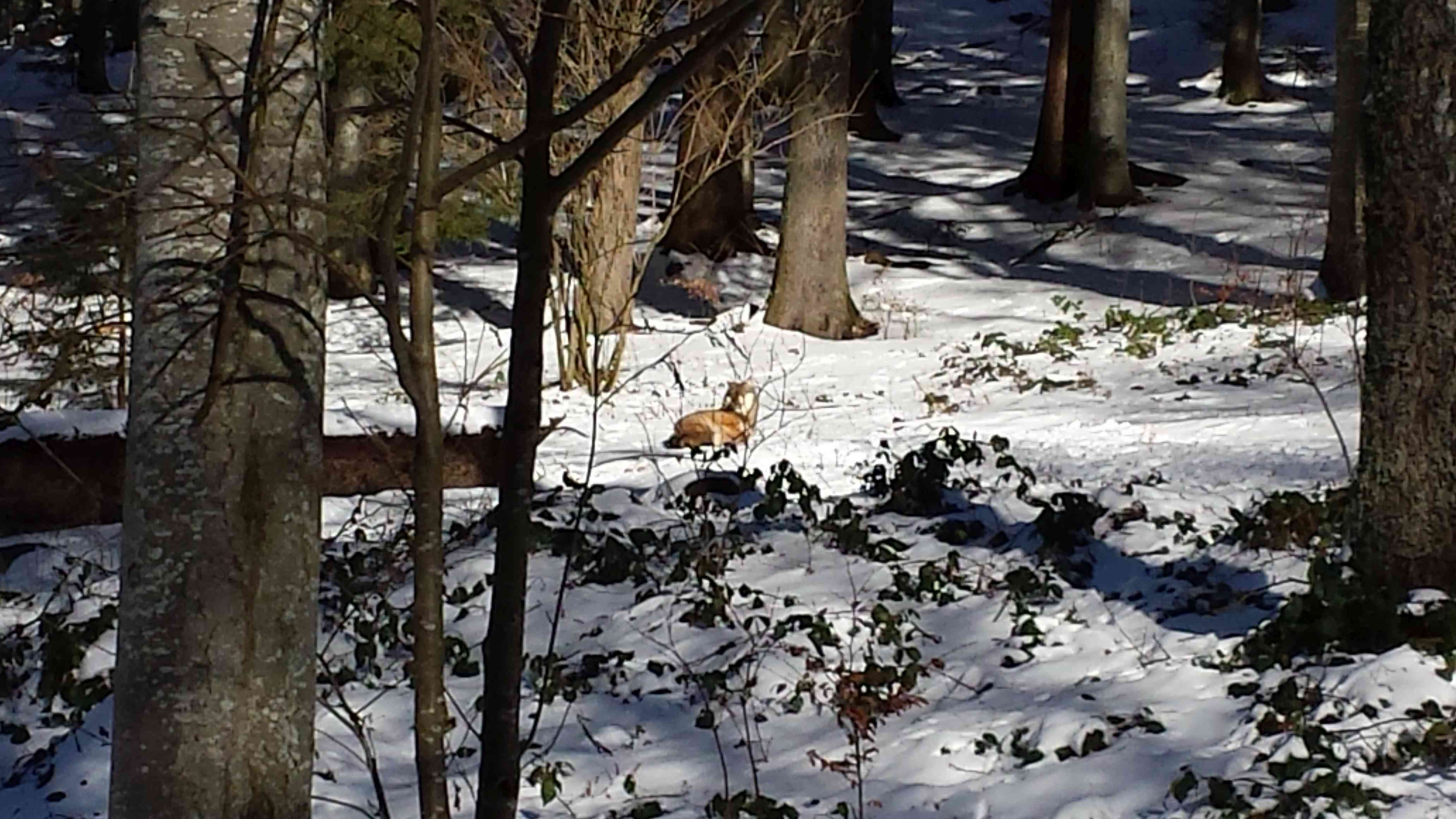 Auch das Rehwild zieht regelmäßig durch den nahen Wald – doch mehr nach dem Motto „how not to be seen“. Wir erkennen manchmal das Leuchten ihrer Augen im Schein der Taschenlampen beim Spaziergang mit Hanabi an dunklen Winterabenden oder wenn sie die Straße überqueren. Eines Mittags lief ein Reh eilig aus dem Schatten des Waldrands auf unsere Wiese und blieb eine kleine Weile in der Mitte stehen, bevor es sich für eine neue Laufrichtung entschied und zwischen Bäumen wieder verschwand. Ob auf Erkundungstour, auf der Flucht, verwirrt, verlaufen, man weiß es nicht. Wir konnten es jedenfalls für einen Moment in Ruhe anschauen, erleichtert, dass Hanabi gerade drinnen auf dem Sofa schlief.