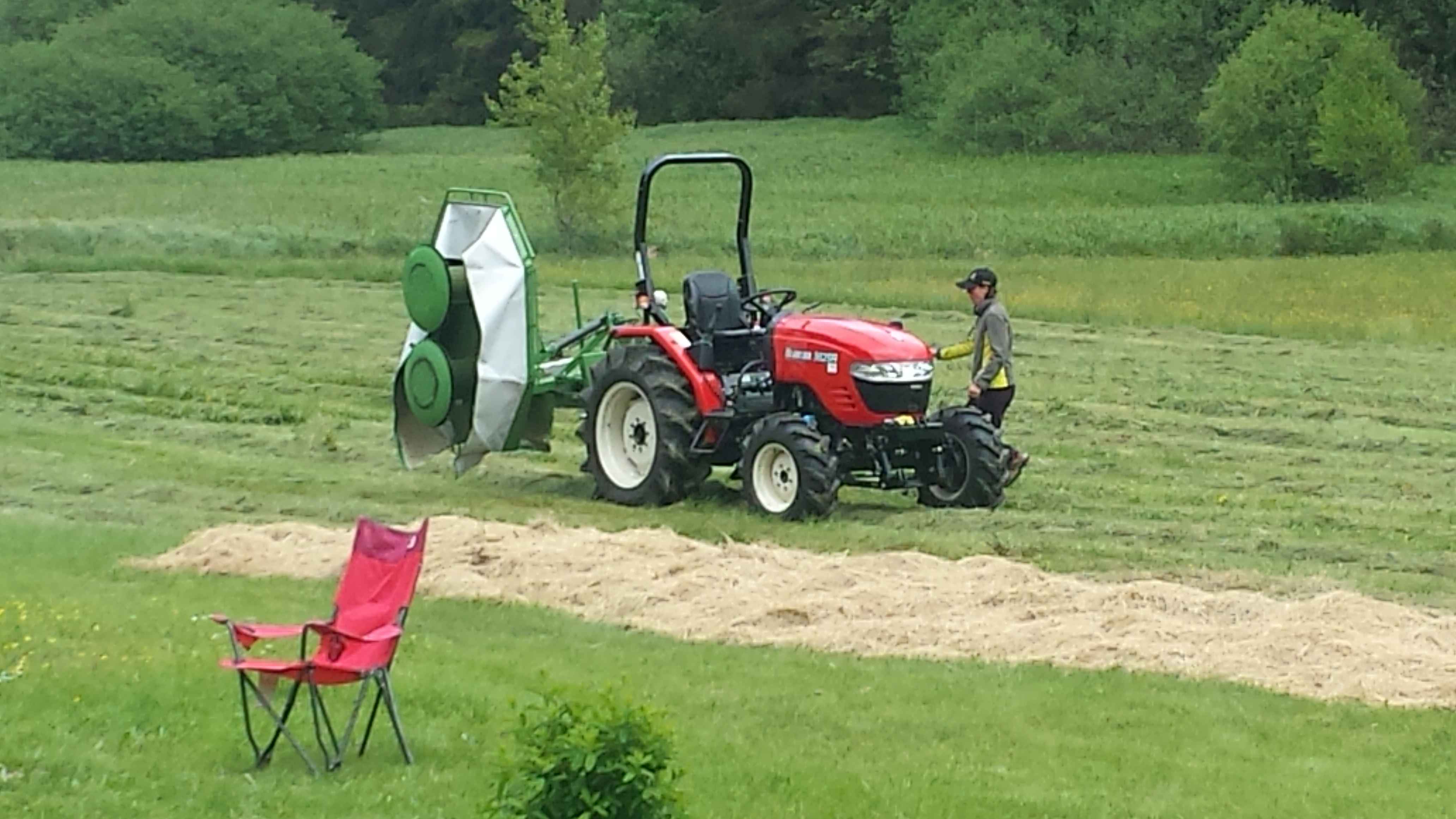 Damit ist in Bezug auf das Heuen allerdings nur der Anfang gemacht; und das noch dazu mit Diesel-getriebenen Pferdestärken. Faszinierend wie unmittelbar die Dinge an so einem Traktor sind (zumindest an unserem;-), wie die Kraft einer Kurbelwelle umgesetzt wird in die Umdrehungen der Mähblätter. Hier wäre nebenbei bemerkt ein Heuwender, eine Häufelmaschine und ein Gerät zur Erstellung von Heuballen unproblematisch anschließbar.