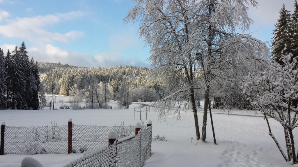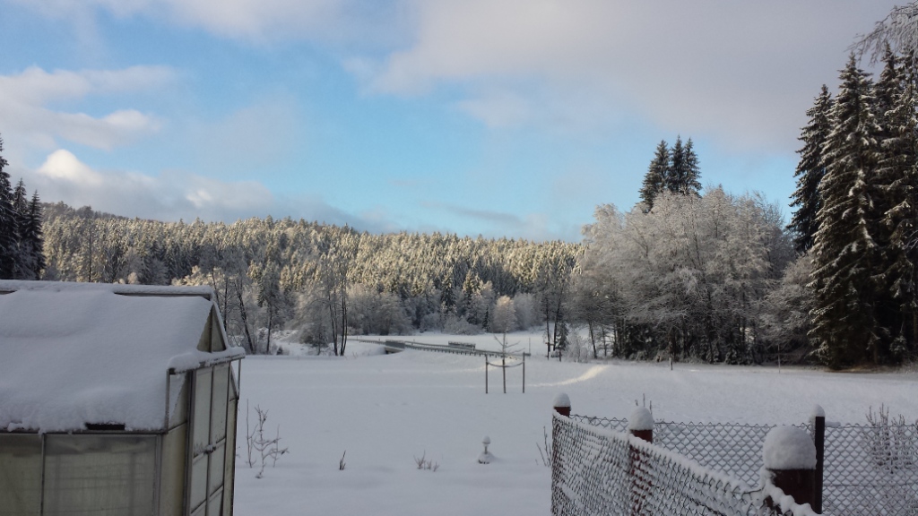 Dienstagmorgen um halb sechs bin ich gelandet und habe tropische 30 Grad in Singapur, Südostasien gegen Schneeregen eingetauscht, Sonne mit gelegentlichen Schauern gegen dichte Wolken und grau. Heute scheint kurzzeitig die Sonne, und das Licht lässt das Weiß erstrahlen. Der Winter hat durchaus seinen Reiz.