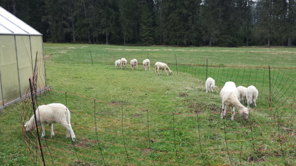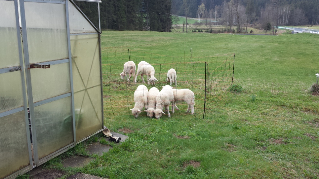 Was das Gras rund ums Haus angeht, so gibt es allerdings keinen Zweifel. Es ist hoch genug, dass man den Rasenmäher herausholen kann oder aber die lebendigen Rasenmäher an ihren Einsatzort bringt.