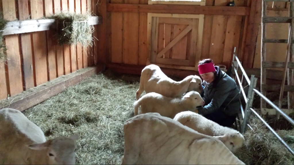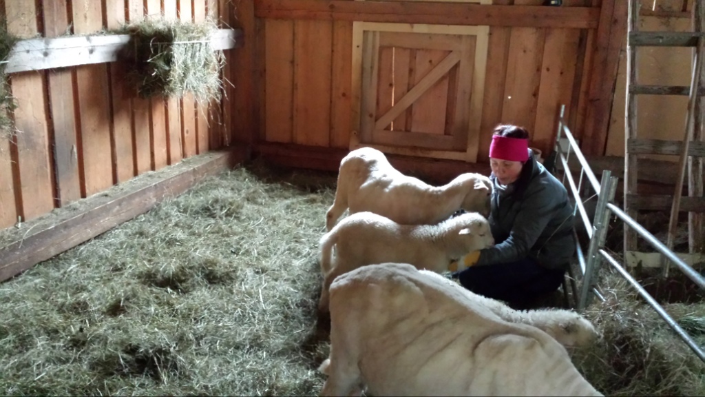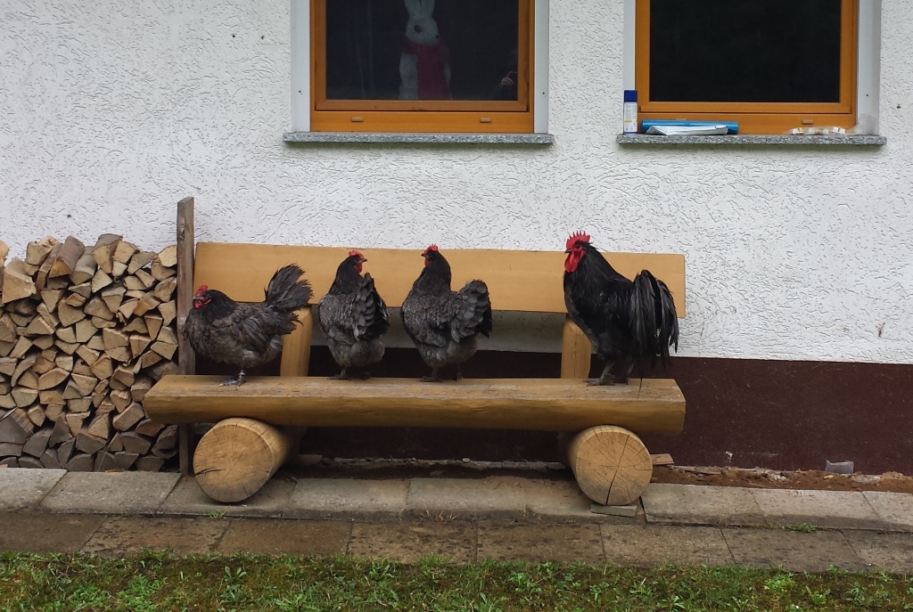 Übrigens war letztes Wochenende der Schafsscherer da und hat die fünf Schafe von ihrer Wolle befreit. Auch diese Aktion fand zum zweiten Mal statt – zumindest für uns denn der Vater mit dem Sohn hatten an diesem verregneten Sonntag mit uns acht Kunden. Entweder gibt es mehr Schafszüchter oder weniger Schafsscherer oder beides;-) Den Hühnern und Arnie war es deutlich zu nass. Warum also nicht auf der überdachten Bank eine Pause einlegen.