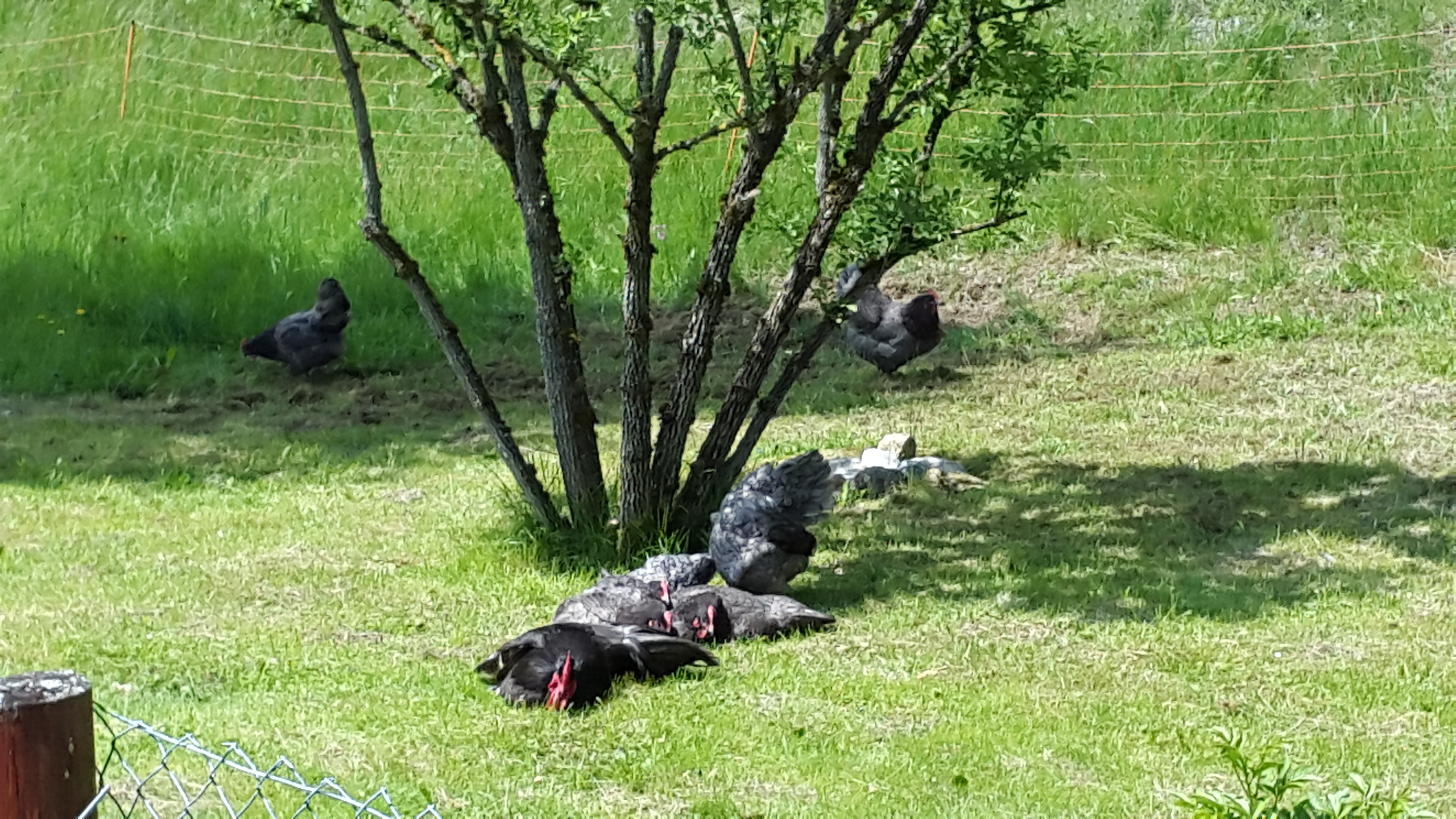 Ob es sich ausgezahlt hat, den Holler-Busch von seinen trockenen Ästen zu befreien, werden wir auch erst in ein paar Jahren sehen. Angesichts seiner vermoosten Äste hat er wohl für einen Hollunder schon ein biblisches Alter erreicht und es wäre schön, wenn er noch ein paar Jahre durchhalten würde, denn auf den Anblick wollen wir nur ungern verzichten und die Hühner halten sich in dem aus unserer Sicht etwas kargen Schatten ausgesprochen gerne auf.