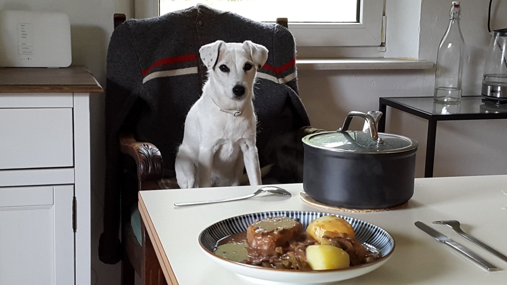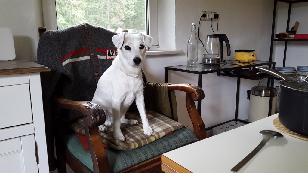Hanabi schaut uns angesichts ihres Alters gelassen zu. Sie braucht sich nicht mehr über die Schafe, Hühner oder den Fuchs aufzuregen, der regelmäßig vorbeischaut, ob nicht doch ein Huhn abzugreifen ist. Sie genießt ihren Altersruhesitz, und wir können es uns nicht verkneifen, hin und wieder ein wenig über Stränge zu schlagen.