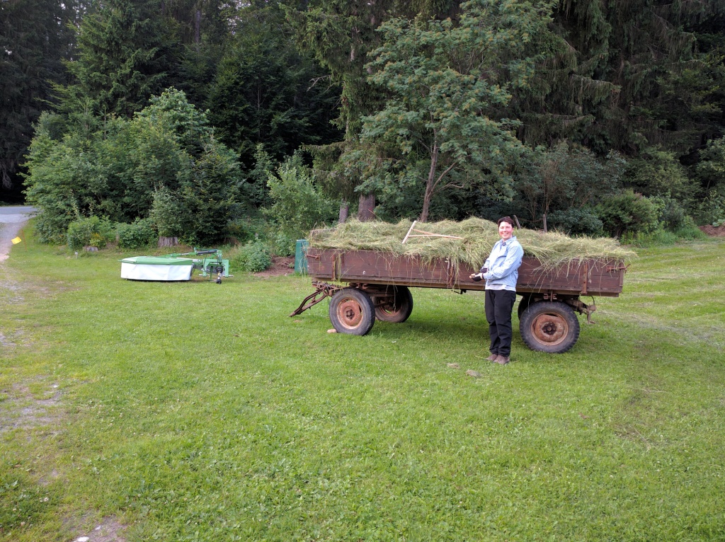 Aber wieder hatten wir unterschätzt, was als Aufgabe noch folgen wird. Denn die letzten Stunden des Tages waren ganz dem Aufladen auf den Heuwagen gewidmet.