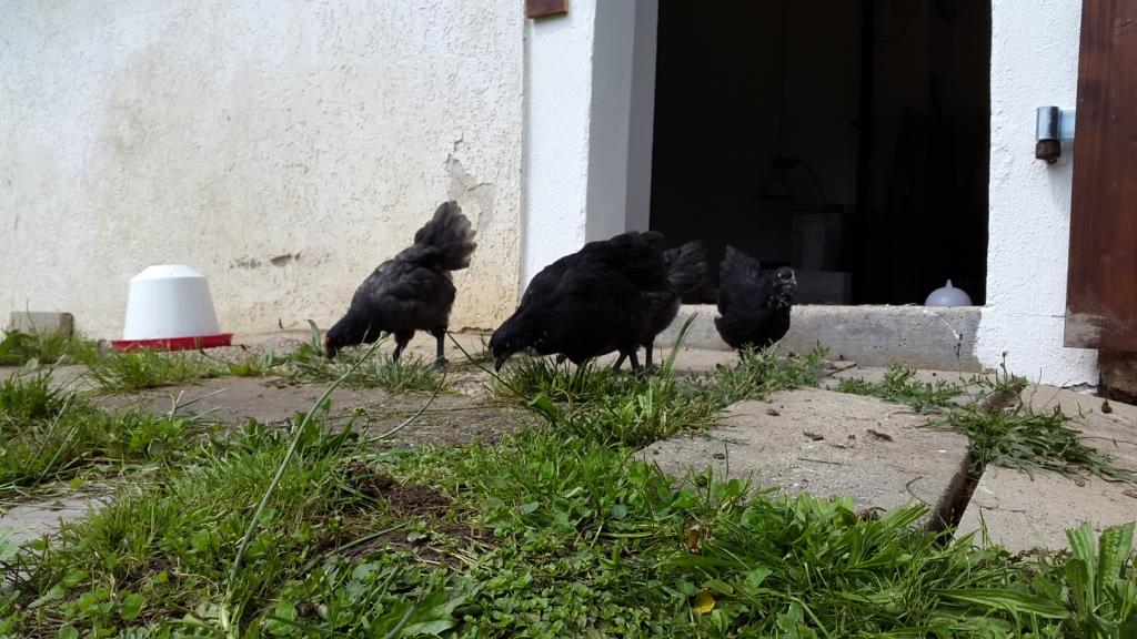Auch die Eierproduktion unser zugegebenermaßen ziemlich dekorativen Hühner lässt derzeit sehr zu wünschen übrig. Immerhin entwickeln sich die vier Nachkommen ordentlich und haben keine Berührungsängste mit der ausgewachsenen Hühnerschar. Es bleibt aber abzuwarten, wie viele Hennen schlußendlich dabei sind.