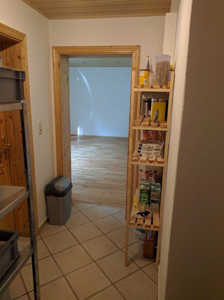 Damit ist der Raum am Ende des unteren bewohnbaren Teils des Hauses deutlich aufgewertet und unsere Fantasie angeregt, was wir daraus alles machen wollen, auch wenn das Zimmer erst einmal wie bisher als Abstell- und Arbeitsraum genutzt werden wird. Es ist wohl so, dass der Mensch oder zumindest wir mit Vollendung der einen Sache schon wieder über die nächste nachdenken…