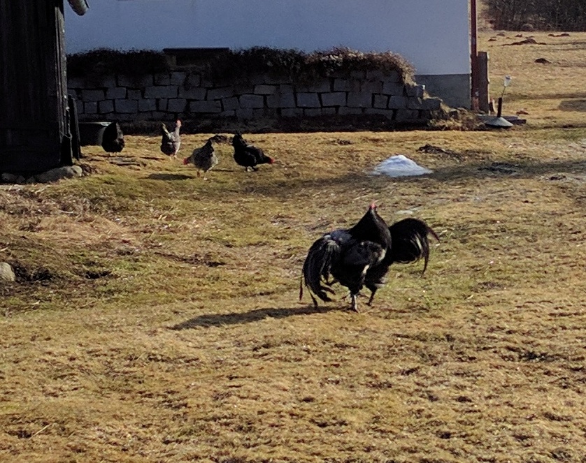 Und so hat alles seine beiden Seiten: die Stallpflicht hielt immerhin die beiden Hähne auseinander. Freilaufende Hühner bedeuten immer auch Angst vor dem Habicht, dem Fuchs, dem Wiesel – und in unserem Fall die Angst vor dem tödlichen Ausgang der Auseinandersetzung zwischen unseren beiden Machos. Trotzdem will ich zumindest dieses Idyll nicht missen.