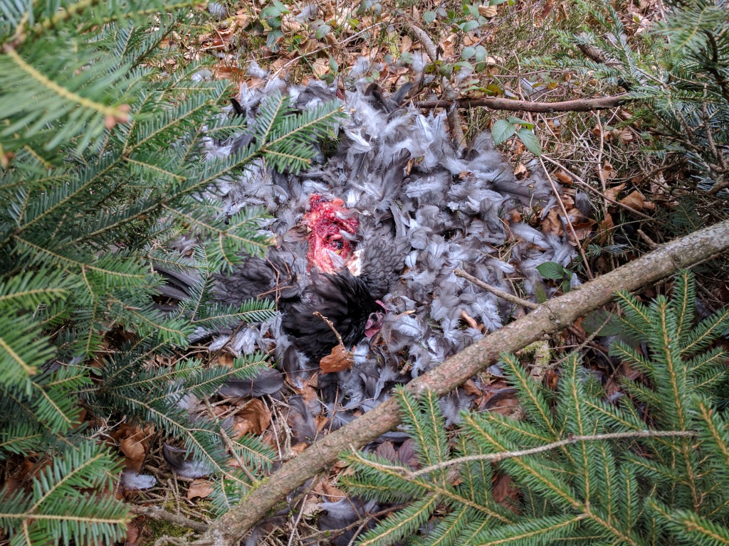 Wir nehmen an, dass die Hühner jetzt erst einmal das Wäldchen hinter unserem Haus meiden werden, aber solange wir sie nicht einsperren wollen, wird so etwas leider nicht ausbleiben. Das sind nun einmal die beiden Seiten des Landlebens.