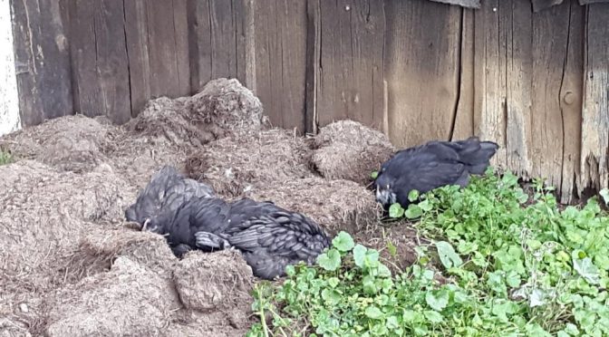 Als wir gestern Nachmittag nach einem längeren Spaziergang mit Hanabi zurückkamen, standen die alten Hennen alle in einer Ecke eng am Haus in der Nähe unserer Haustür. Auch einige der jungen Hennen und Arnie waren in der Nähe. Dieses Ensemble und Arrangement wirkte etwas merkwürdig, aber wir dachten uns noch nichts dabei. Als wir aber am Abend die Hühner in ihre Ställe bringen wollten, war klar: