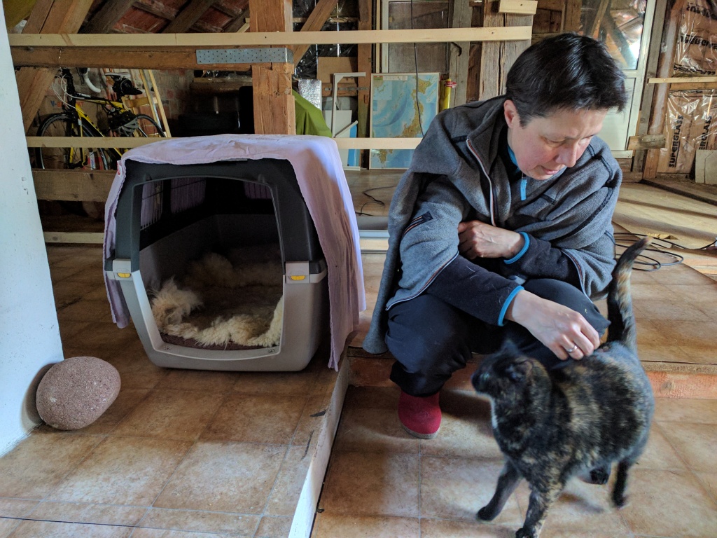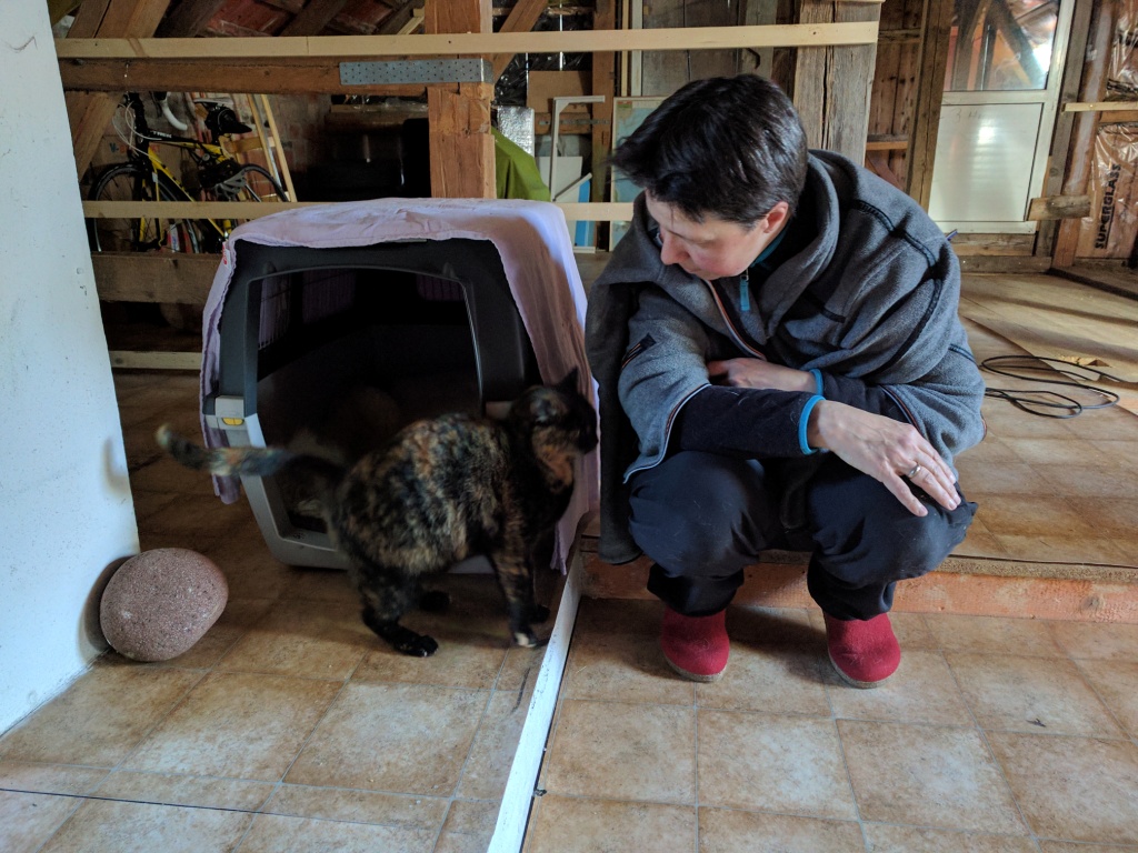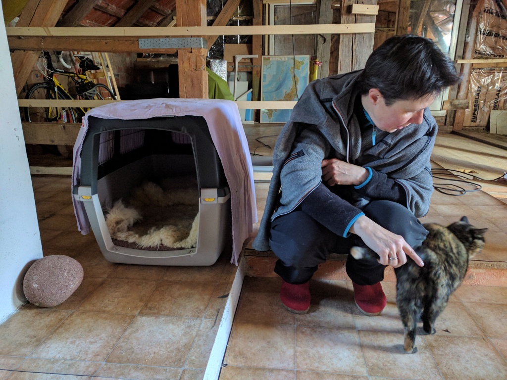 Damit war die Sache schon fast beschlossen, aber ich wollte zumindest bei einem persönlichen Besuch herausfinden, ob sie mir ins Gesicht springt oder uns eine Chance gibt. Wir fuhren also noch einmal nach Wollaberg und waren von Haru (Pina) begeistert; zumal wir unser neuen Mitbewohnerin die ganze Scheune als ihr Reich anbieten können. Für Sofa und Bett haben wir ja Hanabi, unsere 15-jährige Jack-Russel-Dame, die früher jede Katze versucht hätte, zur Strecke zu bringen, mittlerweile aber schon um die Hühner einen Bogen macht. Wir hoffen also, dass Haru und Hanabi sich aus dem Weg gehen werden, nachdem Haru Hanabi erst einmal eine gewischt hat – das wird wohl leider nicht zu vermeiden sein, wenn beide frei um unser Haus in der Bergerau herumstreichen dürfen.