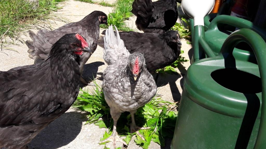 Unsere Küken sind mittlerweile 2 1/2 Monate alt und eigentlich keine Küken mehr. Glücklicherweise ist es bei der geschlechtlichen Verteilung von zwei Hähnen zu drei Hennen geblieben. Damit dürfte die Eier-Produktion gesichert sein. Die drei alten Australorps-Hennen haben die Ei-Produktion nach drei Jahren endgültig eingestellt.