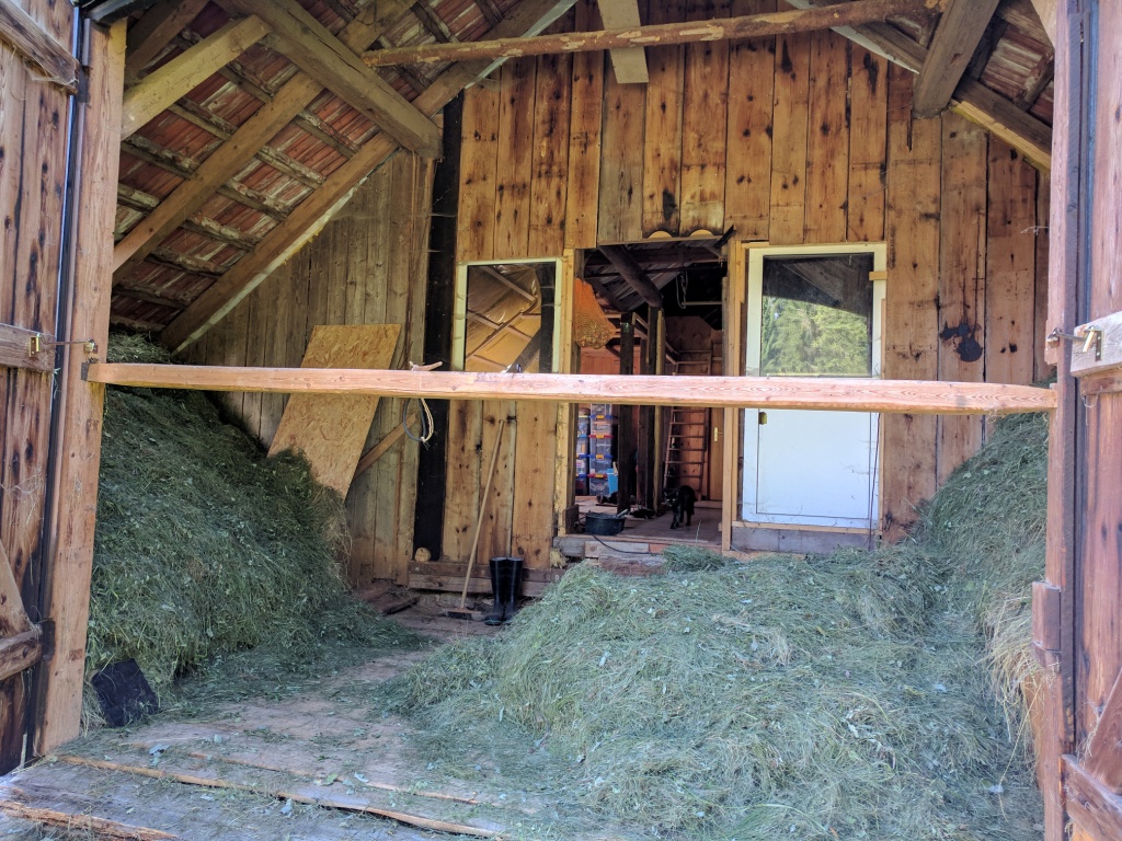 Hier kann und musste das Heu noch etwas nachtrocknen. Haru, unsere Katze, fühlte sich zwar kurz gestört, um sich dann aber im Heu ihr Plätzchen zu suchen. Die Halme sind nicht besonders lang und die Ernte füllte noch nicht einmal den Ladewagen komplett aus. Aber der Geruch lässt hoffen, dass die Schafe in den kommenden Monaten gerne davon essen werden – etwas anderes gibt es dann auch nicht mehr.