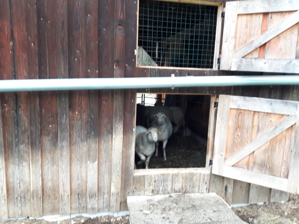 Jetzt stehen unsere Woll- und Fleischlieferanten wieder hinter dem Schafstall und können die Nacht über in Sicherheit gebracht werden. Das Heu türmt sich daneben zwar ordentlich auf, wir sind aber trotzdem skeptisch, ob es wohl den langen Winter über reicht. Das hängt auch davon ab, wann die Schafe ihre Lämmer bekommen. So dick wie drei von ihnen aussehen, dürfte es nicht mehr allzu lange dauern. Dann sind mehr Mäuler zu stopfen und wir werden wohl ein paar Rundballen irgendwo kaufen müssen.