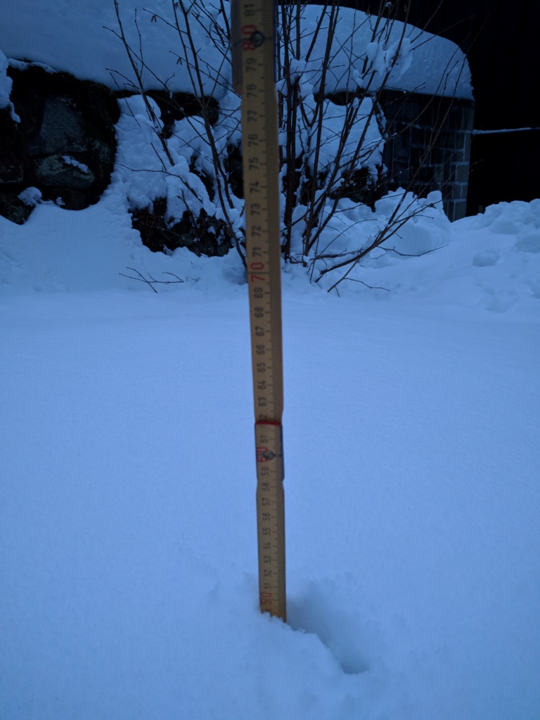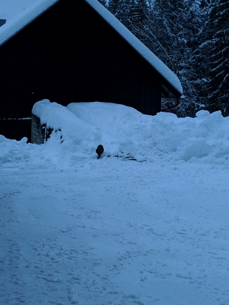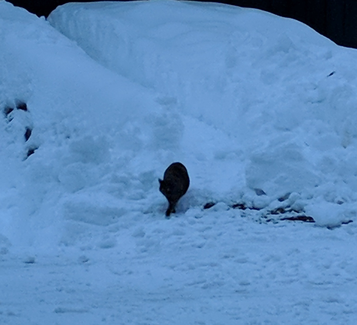 Wenn am 21. Dezember nach dem Kalender der Winter beginnt, wird die Schneehöhe wohl weiter angewachsen sein. Zum Glück haben wir Platz vor den Garagen, um die Schneemassen an die Seite schieben zu können. Allein das Schneeschild an der Vorderseite unseres Traktors reicht dafür nicht mehr aus. Mit Hilfe der Schaufel, an der Rückseite des Traktors angebracht, müssen die Schneeberge an die richtige Stelle transportiert werden. Dann hat auch Haru (Frühling) wieder eine Chance durch den Schnee hinaus ins Freie auf Mäusejagd gehen zu können.