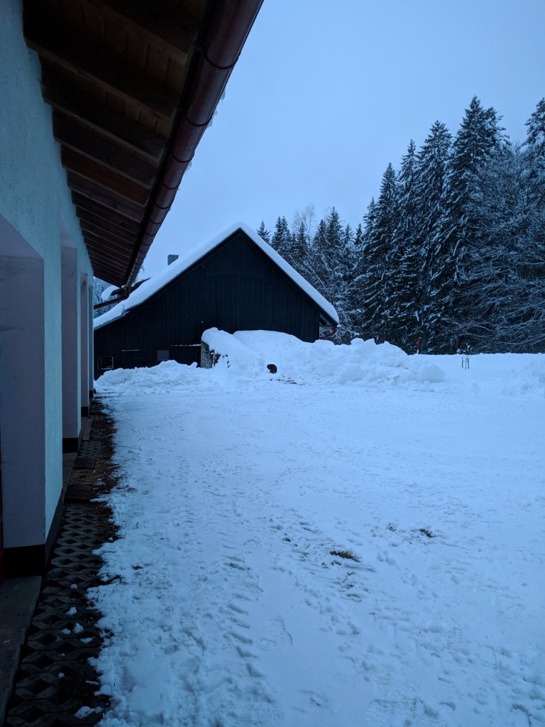 Die längst Nacht des Jahres steht uns noch bevor. Doch schon jetzt sind es 50 Zentimeter Schnee, der sich rund ums Haus angesammelt haben. Das sieht zwar schön aus, ist aber mit viel Schneeräumen verbunden. Und ohne unseren Traktor, also die diesel-betriebenen Hilfsmittel, wäre es unmöglich, den Weg bis zur Straße frei zu bekommen. Es sind gut 50 Meter, die vom Schnee befreit werden müssen, damit Silke zu ihrer Arbeit im Pflegeheim oder der Pflege-Schule kommt und ich nach München zum BR.