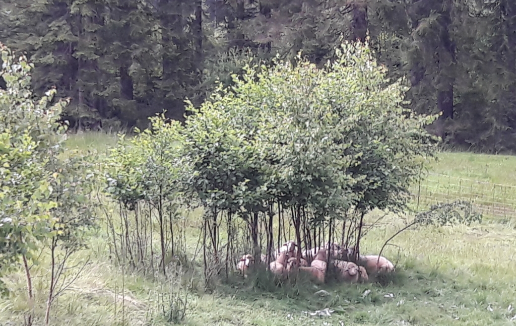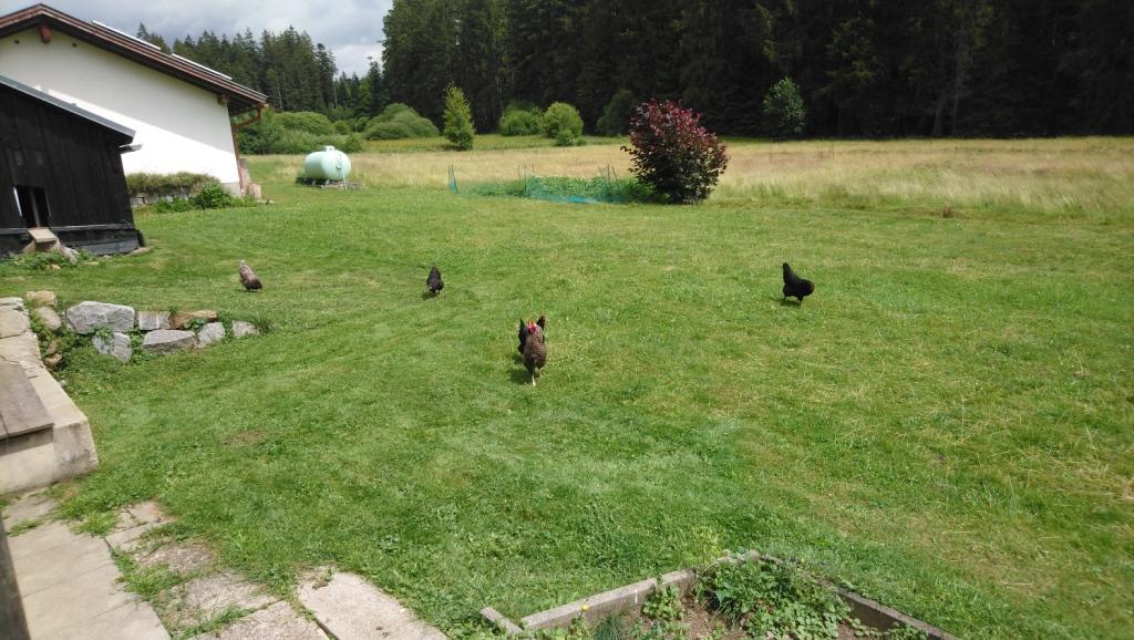 Es wird wohl nicht die letzte Henne gewesen sein, die wir an unsere tierischen Nachbarn im Nationalpark abtreten müssen. Der Habicht, der Marder, der Fuchs – zum Glück haben Luchs und Wolf unseren Schafen noch keinen Besuch abgestattet. Dafür aber unser Landmetzger am vergangenen Sonntag, so dass sich der Bestand von dreizehn  auf acht reduziert hat. Den „Übriggebliebenen“ ist zum Glück nichts anzumerken. Hauptsache es gibt frisches Gras und die Fliegen, Mücken, Bremsen geben kurzzeitig Ruhe.