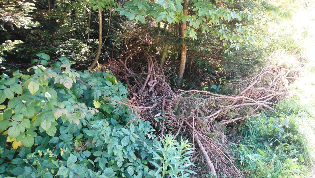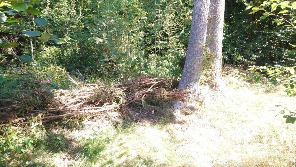 Den Haufen Gipfelholz haben wir umsonst bekommen unter der Maßgabe, dass wir das Material verarbeiten und den Platz ordentlich hinterlassen. Betriebswirtschaftlich eine gute Ausgangsbasis und nach drei Wochen ist die Arbeit auch tatsächlich geschafft. Aus den dickeren Enden der Äste haben wir Anzündholz gemacht, die langen Äste als Zaun am Waldrand und entlang der Auffahrt aufgeschichtet, damit die Hühner nicht mehr so tief in den Wald hineingehen, nachdem sie wieder frei herumlaufen dürfen. Der Fuchs kann sich zwar dahinter gut verstecken, aber wir hoffen, dass unser neues Familienmitglied „Jackson“ ausreichend Eindruck macht, so dass sich der Fuchs nicht mehr traut, sich bei uns seine Mahlzeit abzuholen. Wir werden sehen.