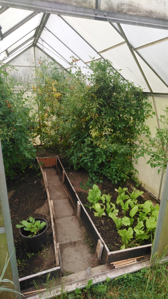 Das gilt auch für den sonstigen Gemüseanbau. Den Kampf gegen den Erdfloh und den Kohlweißling verlieren wir meistens. Von den Kohlrabi-, Sellerie-, Chinakohl-Pflanzen haben sich nur wenige durchgesetzt. Immerhin gab es dieses Jahr mehr Karotten als die Jahre davor, nachdem sich die Kombination mit Zwiebeln als probates Mittel gegen die Möhrenfliege erwiesen hat. Doch auch hier steht der Ertrag in keinem Verhältnis zum Aufwand. Denn wenn man auf den Einsatz von Chemikalien verzichten will, ist das Unkraut-Zupfen eine ziemlich mühselige Angelegenheit; und mit dem Wässern immerhin aus unserer, eigenen Quelle kam ich ebenfalls kaum hinterher. Es ist einfach ungerecht, dass die Nutzpflanzen mehr kühles Nass brauchen als die meisten Unkräuter. Ich weiß bzw. ich habe mittlerweile gelernt, dass man im Sinne der Permakultur auch den meisten Unkräutern einen Nutzen abgewinnen kann, aber die Fähigkeit den Garten so anzulegen, dass sich alles gegenseitig unterstützt und zum Beispiel Schatten spendet, diese Fähigkeit habe ich noch nicht erworben. Und ich fürchte, es wird Jahre dauern, bis meine Kenntnisse ausreichen und der Kreislauf in Schwung gekommen ist. Wie effizient ist da doch das Leben in der Stadt – „wohl“ organisiert, auf engem Raum optimiert und gesellschaftlich hoch-spezialisiert. Dafür gibt es keine Schafe auf der Weide vor dem Haus, deren Dung aus dem Winterstall zumindest die Zucchini- und Kürbis-Pflanzen nährt. Aber auch bei unserem schon mehrere Jahre funktionierender Kreislauf steht unter dem Strich eine kleine rote Zahl, selbst wenn ich die Arbeitsstunden nicht in die Berechnung mit einbeziehe.