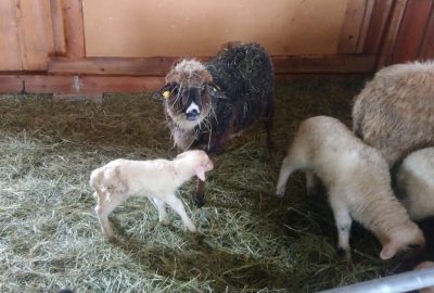 Nichts ahnend war heute Morgen, 28. Februar, lautes, aber sehr hohes Gebähe neben all den bekannten Tönen aus dem Schafstall zu hören. Überraschenderweise stand neben Elvira ein weiteres Lamm. Klein und ziemlich wackelig hat es schon mehrmals verucht bei Mama zu trinken, aber so richtig viel Milch schient auch Elvira nicht zu geben. Wie mir scheint, hat die Kleine jedoch einen extremen Lebenswillen. Denn sie hält sich wacker auf ihren dünnen Beinen. Was die Farbe von Lamm Nr. 6 (Ellie) angeht, so bleibt Elvira das einzige, schwarze Schaf in der Familie;-) Quinta entwickelt sich zwar langsam aber stetig. Möge das auch für Ellie gelten. Wir bleiben optimistisch.