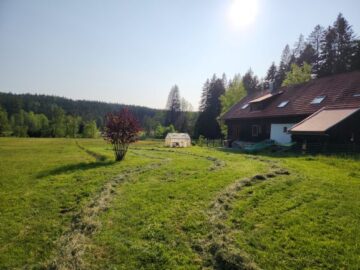 Rund ums Haus zu gehen, nachdem wir geheut haben, fühlt sich wieder frei an. Es wächst aber schon schon fleißig nach und wir haben noch mindestens fünf Felder vor uns.