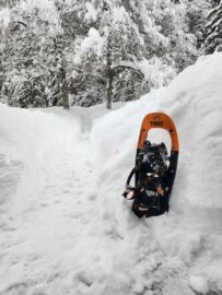 Jetzt hat uns mit rund 50 Zentimeter Neuschnee in einer Nacht das ereilt, was uns die Einheimischen immer angekündigt hatten. Der frühe Winter in der Bergerau ist ganz schön Kraftraubend. Denn die Wege ums Haus sind Handarbeit.