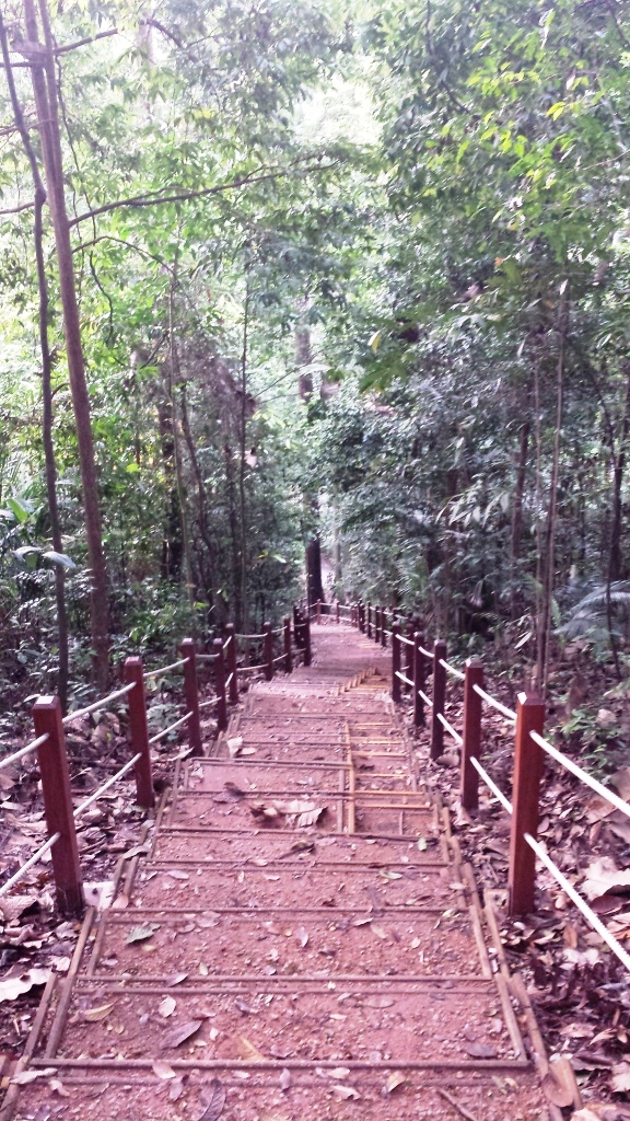 Die Betonumrandete Treppe erinnerte mich an einige Bergerfahrung in Japan. Aber man soll ja nicht vergleichen. Insgesamt sind es 1,2 Kilometer bis nach oben, was angesichts der Schwüle durchaus schweißtreibend ist.