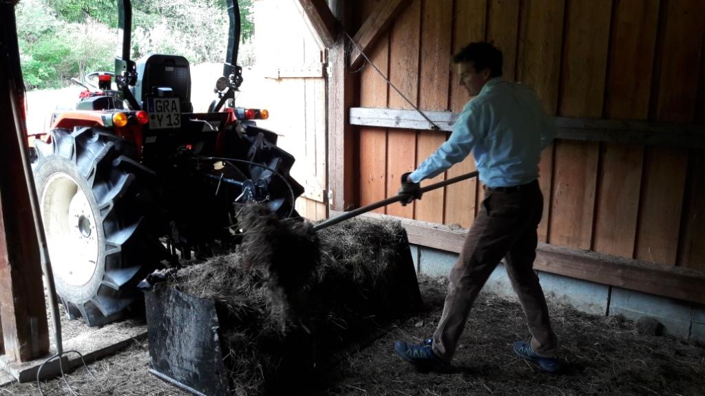 Auch der Heu-Wagen hat sich bewährt – zumindest als Schattenspender. Denn bei dem bisschen Regen, das wir bisher hatten, gingen die Schafe lieber dem Grasen nach, um für kurze Zeit einmal nicht von den lästigen Gnitzen gepiesakt zu werden. Das Zäune-Umstecken klappt ebenfalls wesentlich besser als im letzten Jahr. Zu zweit versuchen wir ein Areal zu erschließen, das Silke dann, wenn ich in München beim Arbeiten bin, alleine ohne Probleme erweitern kann. Gegebenenfalls kann sie aber auch alleine die Weidefläche vergrößern. Zusammen macht es aber mehr Spaß und gehört zu den Routinen, die wir am Wochenende meist nach dem Hunde-Spaziergang durchführen.
