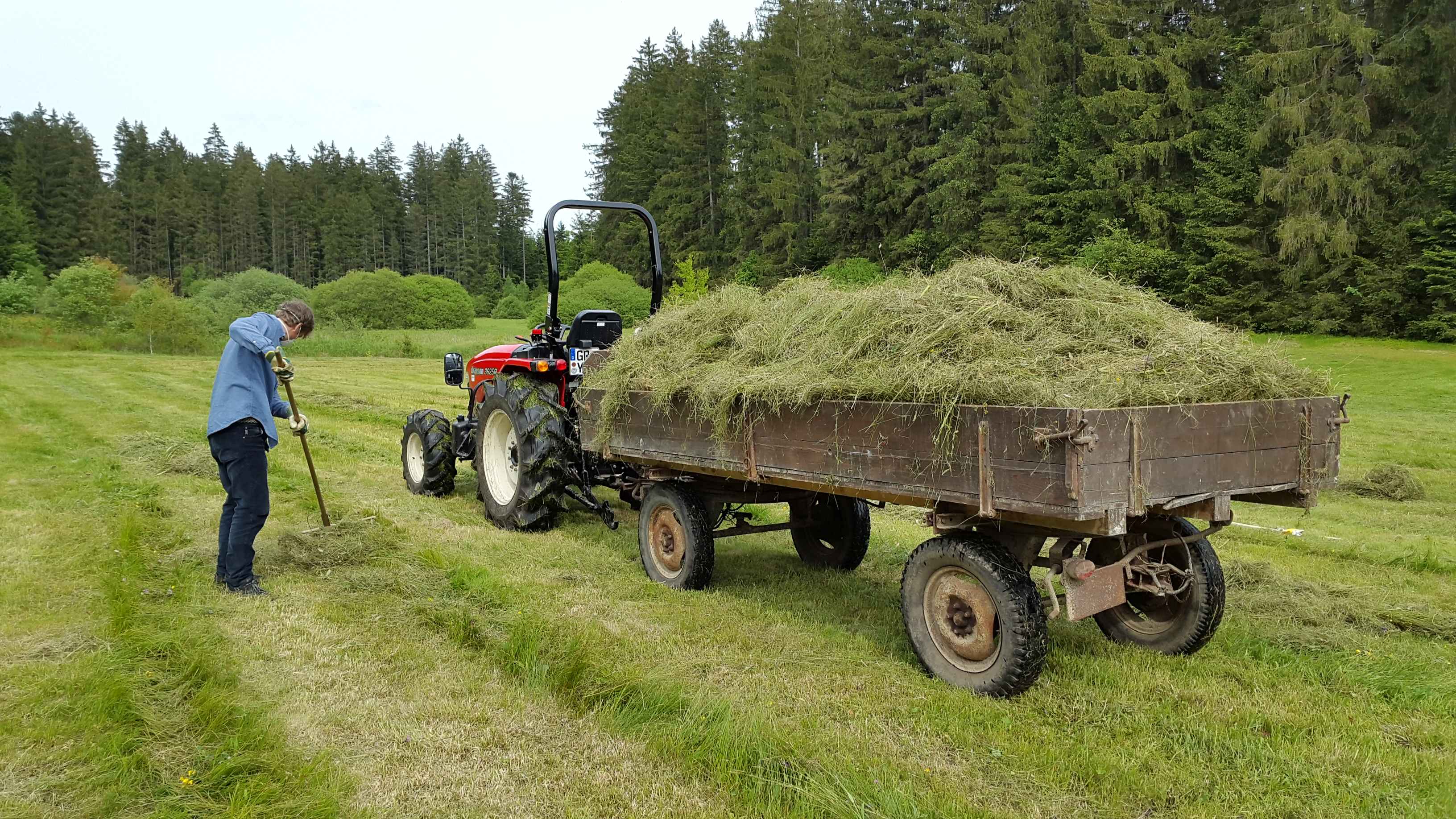 Wir haben die Schafe in diesem Jahr schon früh hinaus gelassen. Das passte gut zum trockenen Wetter. Denn die Wiesen am Waldrand sind in den letzten beiden Jahren ziemlich feucht gewesen. Dieses Jahr konnten die Schafe sich dort satt fressen, ohne nasse Füße zu bekommen. Und das Mähen im Anschluss mit dem Traktor hinterließ keine tiefen Furchen.