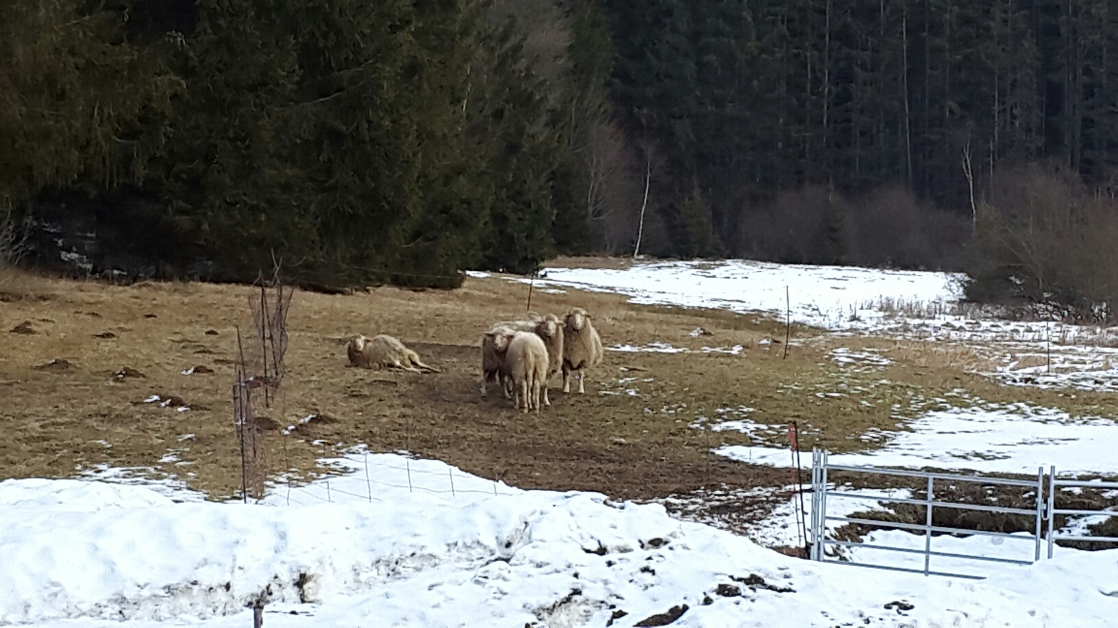 Wir haben uns entschieden, sowenig wie möglich in das Leben der Schafe einzugreifen und es damit der Natur zu überlassen, ob ein Lamm es schafft und dann vom Mutterschaf angenommen wird oder nicht. Aber all das fällt nicht leicht. Nummer 1 liegt jetzt im Wald und dient in der für die Raubtiere der Wildnis schwierigen Zeit des ausgehenden Winters als Überlebenshilfe.
