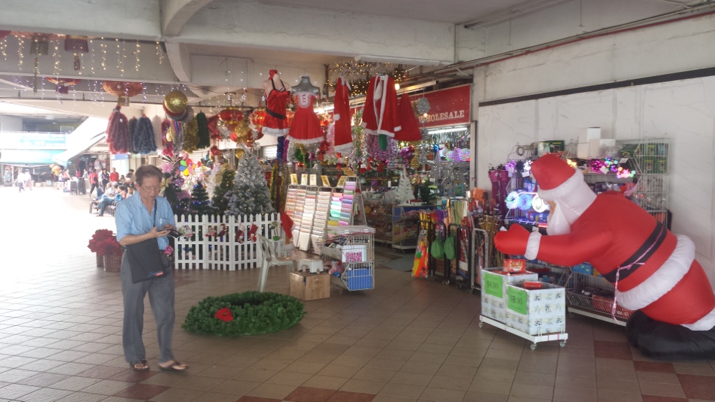 Gefeiert wird – soweit ich weiß – nur bei den Christen (15% der Bevölkerung in Singapur). Ansonsten geht man am 25. Dezember angesichts des Feiertags baden, in die Parks oder trifft sich mit der Familie. Der aufblasbare Weihnachtsmann sollte aber ob Chinese, Inder oder Malaya auf jeden Fall dabei sein.