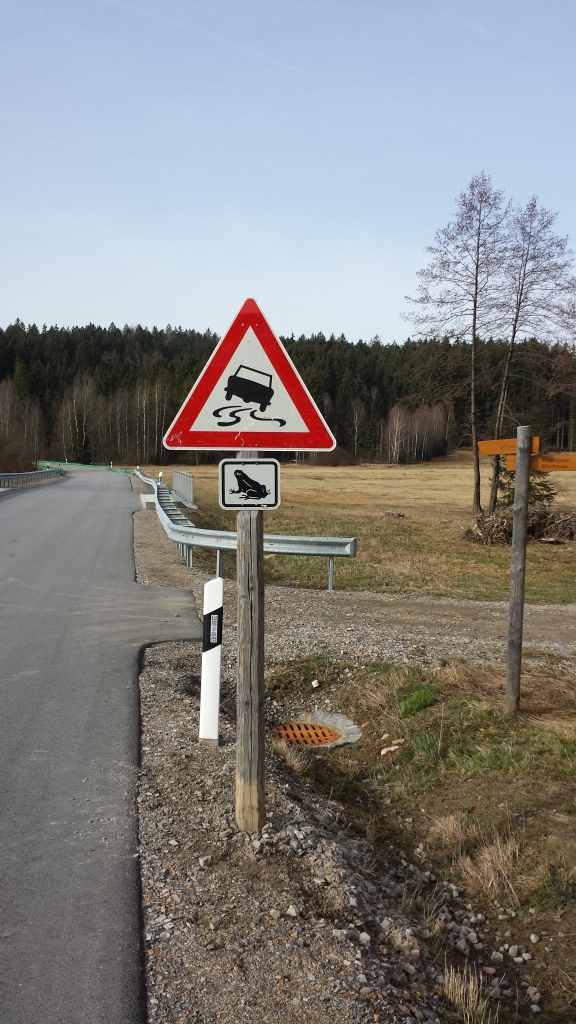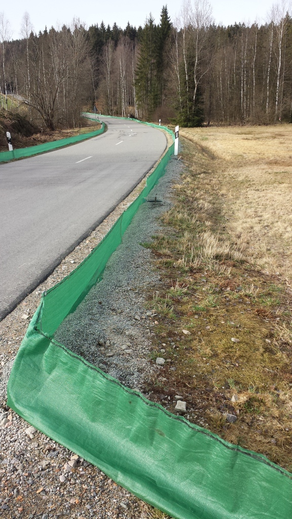 Es ist zwar schon der zweite Frühling und so kommt uns der Frosch-Zaun mit der wechselnden Mannschaft, die die Eimer entlang des grünen Stoffs kontrolliert und gegebenenfalls die Frösche sicher über die Straße bringt, vertraut vor, aber für Vergleich zwischen den Jahren ist es noch zu früh.
