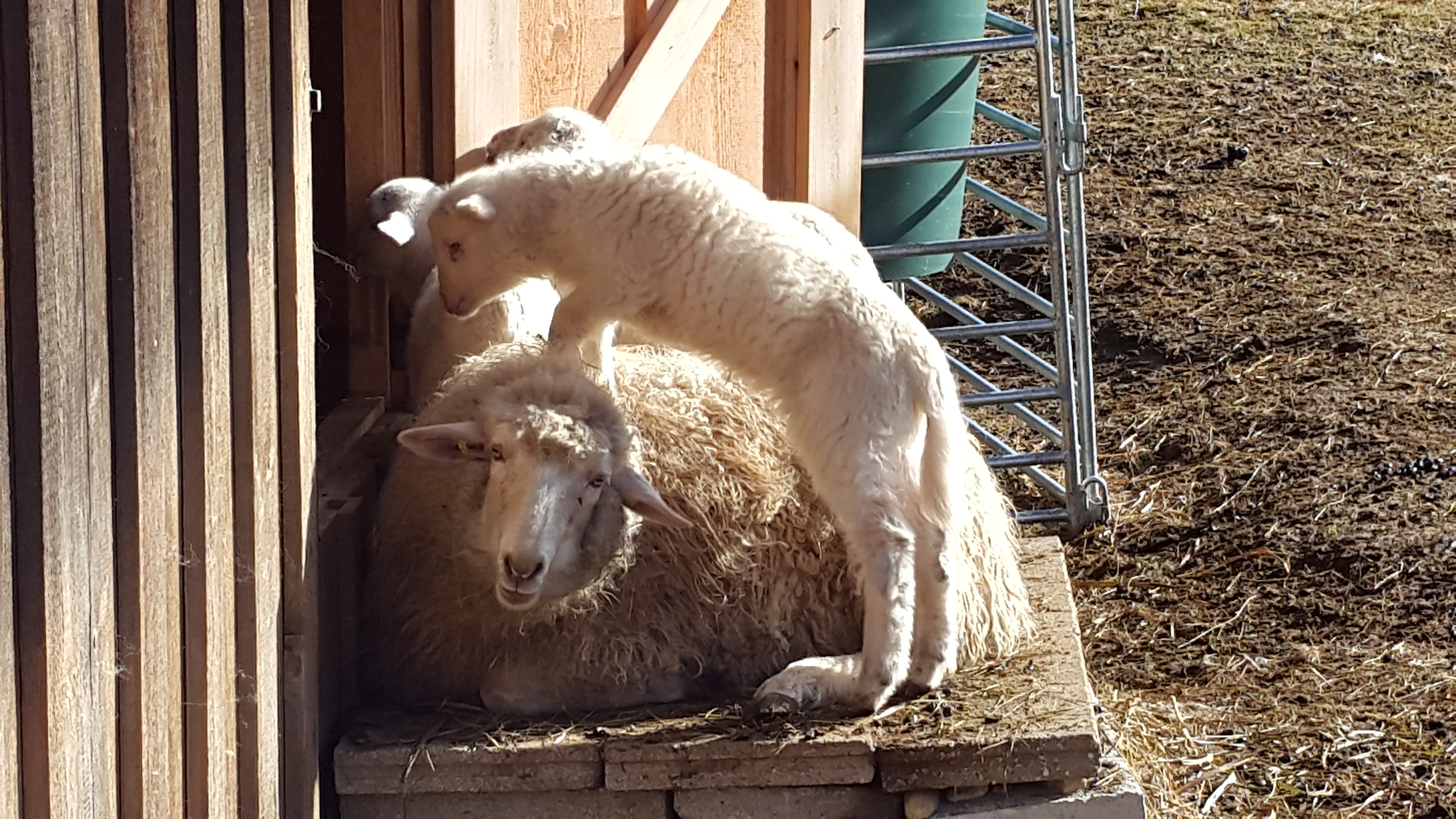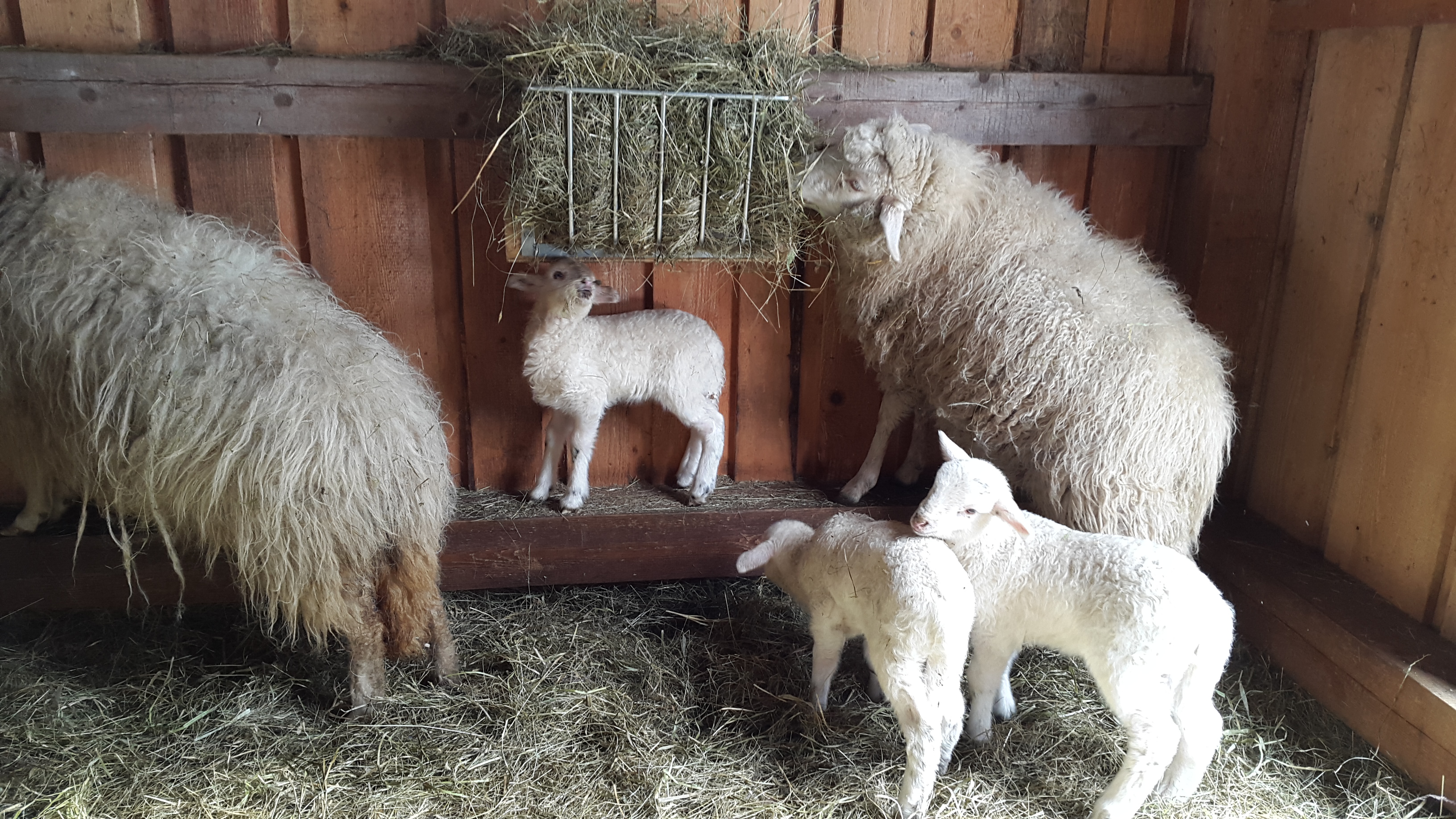 Geben wir den Halmen noch etwas Zeit, ehe die kleinen Mäuler der Schafe die grünen Stengel abzwicken werden, um nach diversen Prozessen in ihren Mägen daraus Energie zu ziehen. Unsere fünf Lämmer, die schon gar nicht mehr so klein sind (Ostern ist ja auch schon vorbei) ahmen die älteren Tiere fleißig nach und mampfen morgens, mittags und abends fleißig mit Heu aus den Raufen im Stall. Ich hätte nicht gedacht, dass Schafe mit solcher Begeisterung altes Heu fressen und dass man trotz dieses kargen Mahls überleben kann; und dass diese Nahrung sogar ausreicht fünf Lämmer im Schafsbauch heranwachsen zu lassen. Das jedenfalls war kein Problem. Wir haben unsere fünf Schafe gut über den Winter gebracht. Und die Lämmer gedeihen ebenfalls.