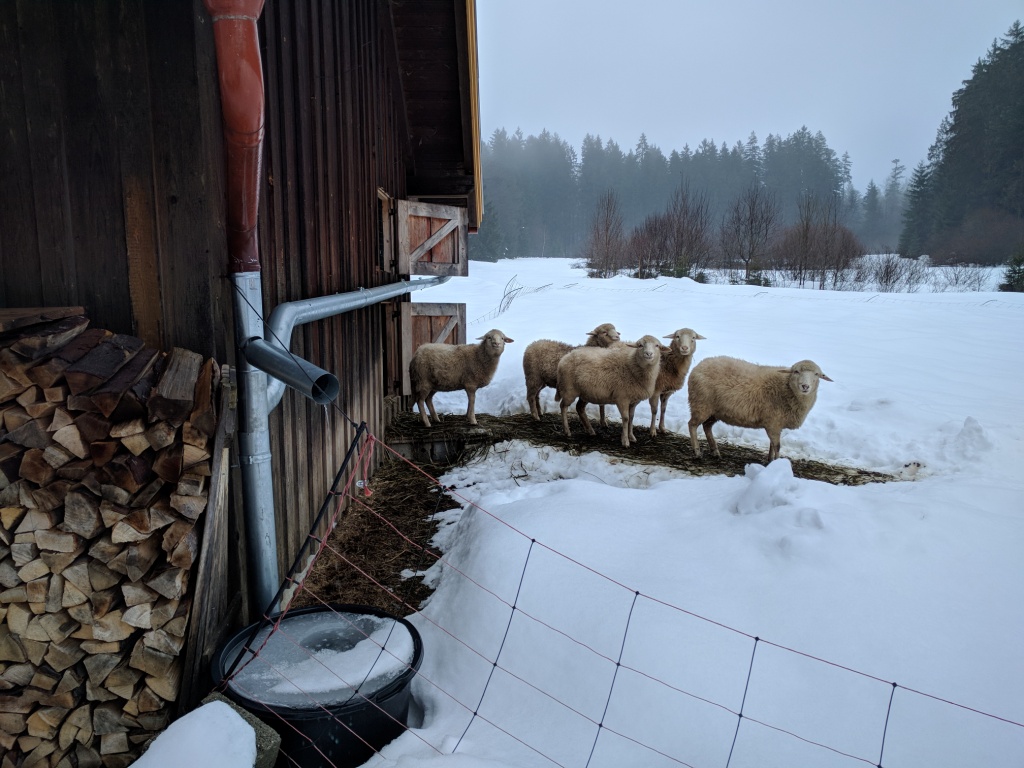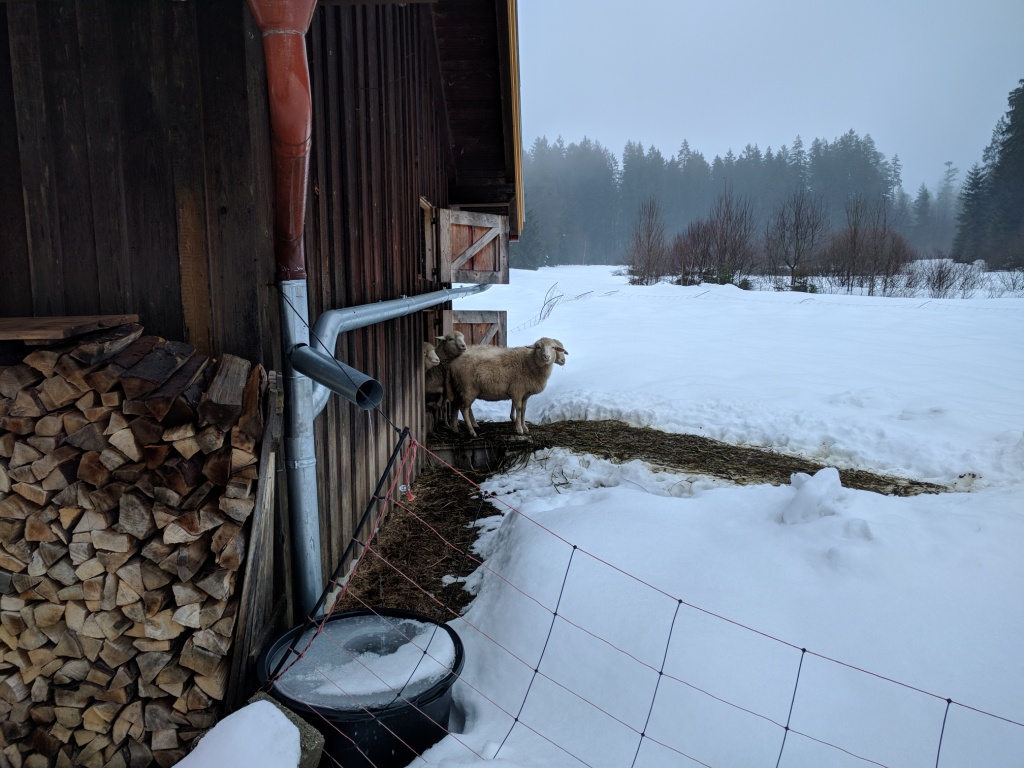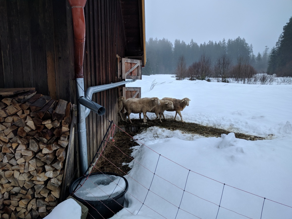 Ansonsten geht das Leben seinen schon fast gewohnten Gang: Frühschicht im Pflegeheim für Silke, da in diesem Monat Praxis und erst im nächsten wieder Schule ansteht; das bedeutet aufwachen um vier Uhr. Tiere versorgen am Morgen (Hund, Katze, Hühner, Schafe), Haus und Kochen sind derzeit meine Aufgaben kombiniert mit Langlaufen oder Joggen; der Haushalt wird gemeinsam gestemmt und die Besuche bei den Lämmern natürlich auch.